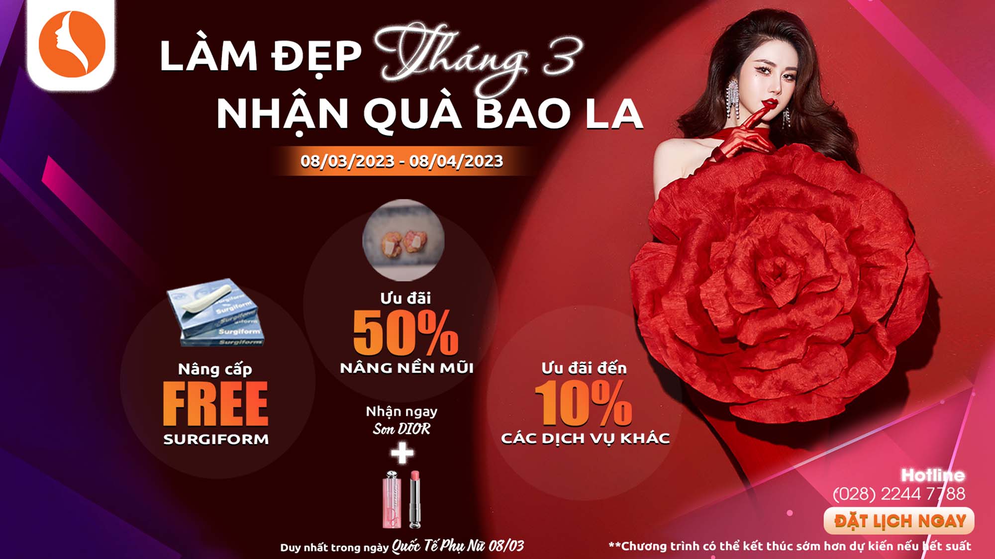 Chương trình ưu đãi “Làm Đẹp Tháng 3 – Nhận Quà Bao La” bắt đầu từ 0h ngày 08/03/2023 đến 23h59’ ngày 08/04/2023 với số lượng đăng ký giới hạn chỉ 83 suất. Chi tiết chương trình như sau: