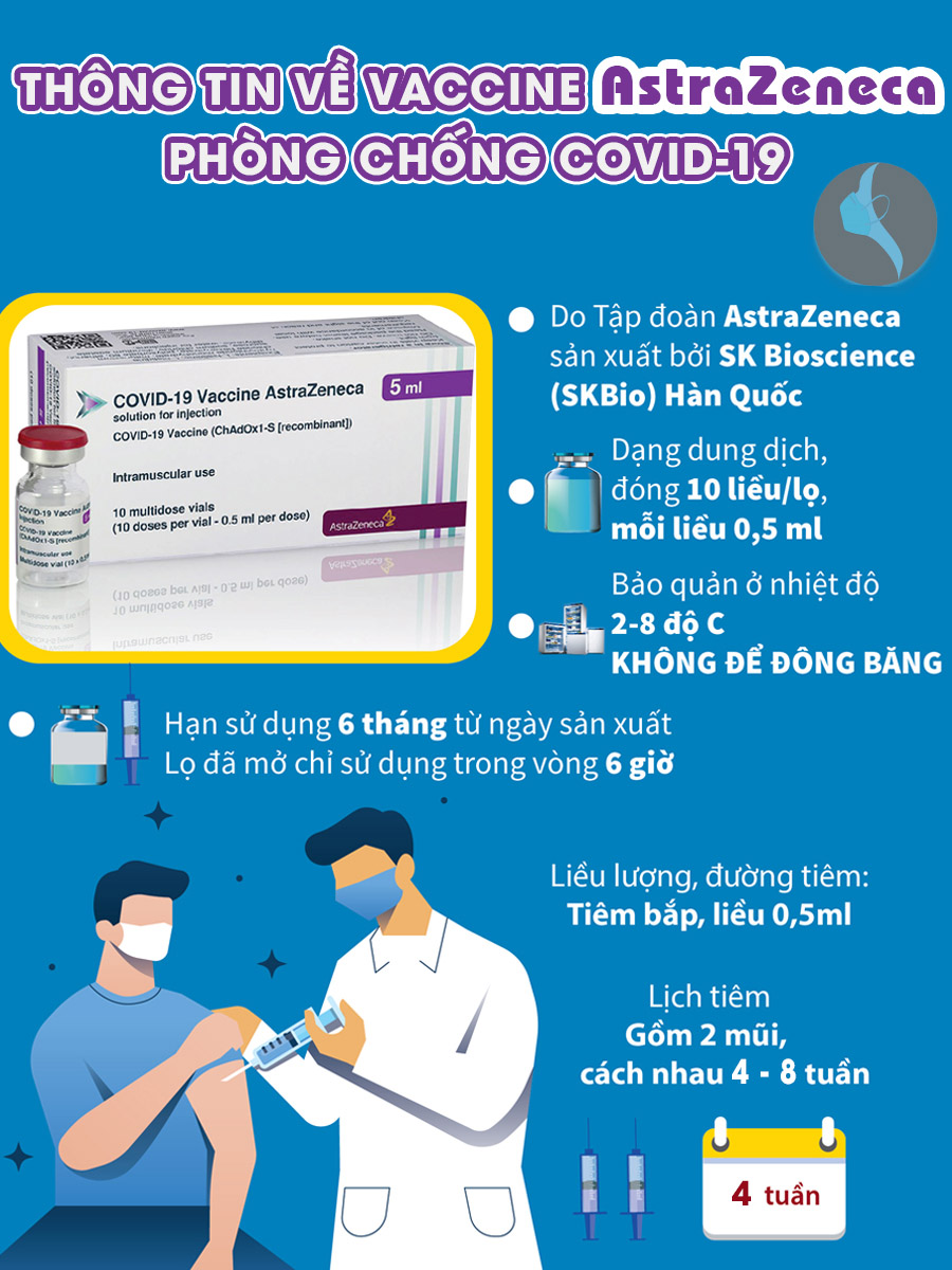 Với phác đồ tiêm 2 liều tiêm tiêu chuẩn, được chứng minh an toàn và hiệu quả trong việc ngăn ngừa COVID-19, vắc xin AstraZeneca (Vương quốc Anh) đã được phê duyệt sử dụng khẩn cấp tại Việt Nam.